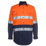 100% Cotton for 100% comfort,190gsm double pre-shrunk twill,Complies with Standard AS/NZS 4399:1996 for UPF Protection,Complies with Standards AS/NZS 1906.4:2010 AS/NZS 4602.1:2011 Day Only,Two-piece collar,Two front pockets with button-down flaps and pen insert,Curved hem with back tail styling,2 needle lap seamed for improved durability,All pressure points bar tacked for extra strength and durability
